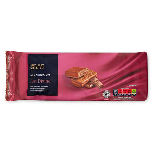 Milk chocolate coated cocoa biscuits filled with cocoa flavoured cream.