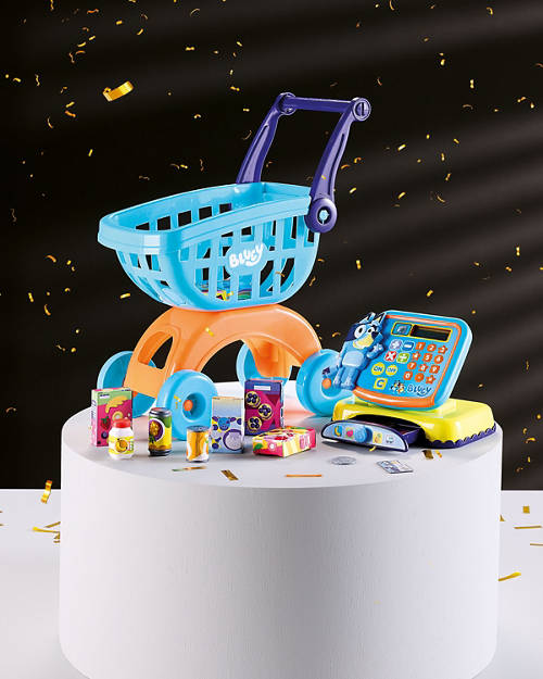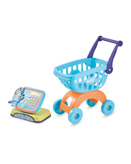 • Includes Bluey shopping trolley, Bluey Cash Checkout with a working calculator, Bluey money and card, Bluey shopping accessories
