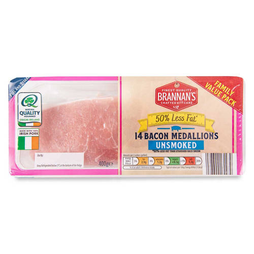 - 50% Less Fat*. *50% less fat than standard back bacon