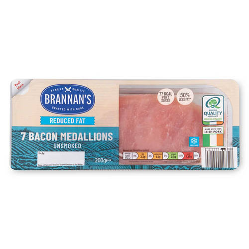- 50% Less Fat*. *50% Less fat than standard back bacon