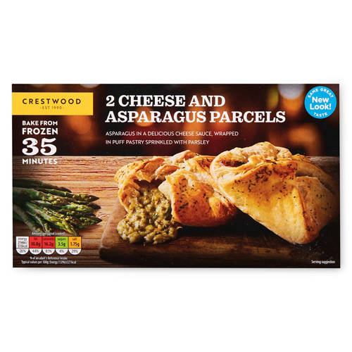 Asparagus in a cheese sauce, encased in puff pastry and sprinkled with dried parsley.