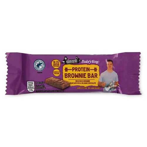 Protein brownie bar covered in Belgian chocolate.