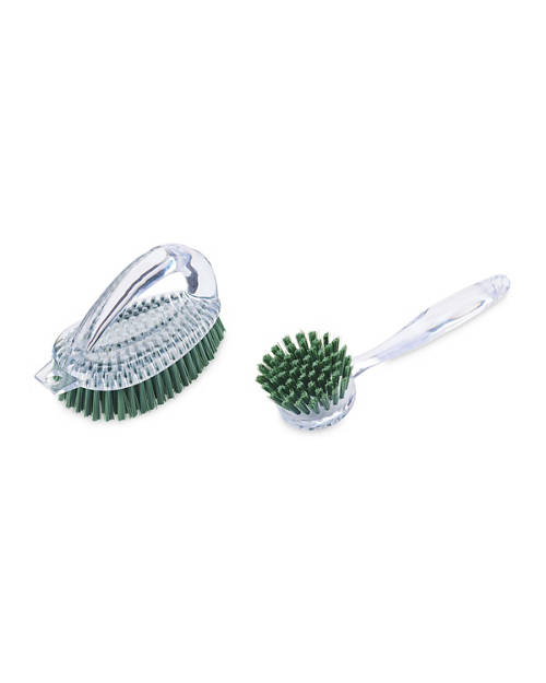 - 2 Pack brush sets include a scrubbing brush and a dish brush