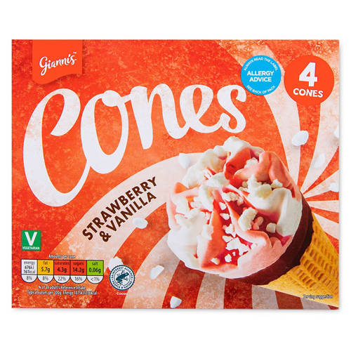 Strawberry & Vanilla Ice Cream Cones 4 Pack