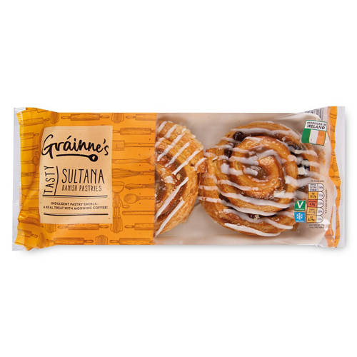 Pastries with sultanas, crème filling, icing and sugar glaze