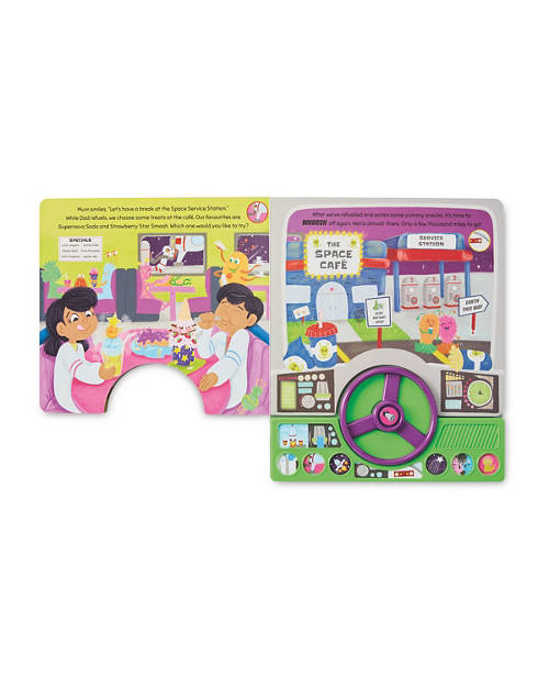 - Story book to read, featuring a Steering Wheel and sound buttons so readers can feel like they're really flying