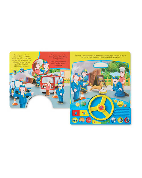• With a story book to read and featuring a Steering Wheel sound board, your little hero can come to the rescue again and again