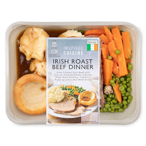Slowed cooked Irish beef served with creamy mashed potato, carrots, peas, herb stuffing, Yorkshire pudding and a red wine gravy.