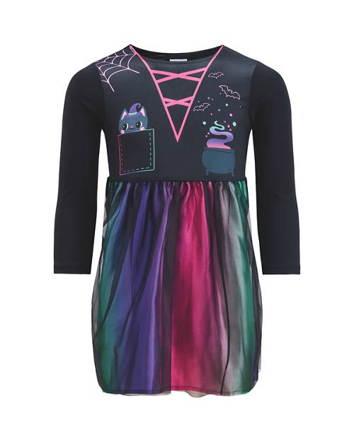 - Choose from: Pumpkin (one size), Pumpkin dress, Skeleton, Witch and Gaming Skeleton available in sizes 3/4 - 9/10 years