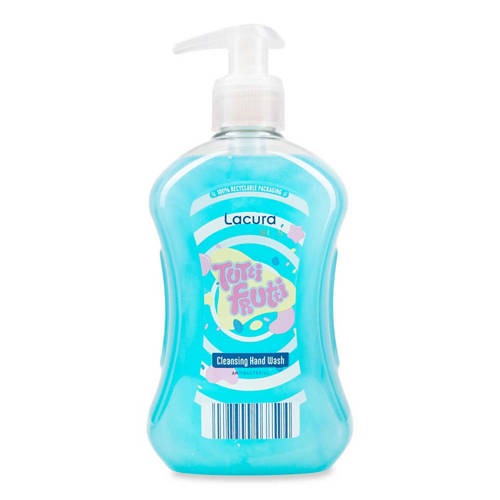 Cleansing Handwash, Antibacterial,100% Recyclable Packaging, Lacura Fun Family Edition Tutti Frutti handwash protects and cleans your skin. With a mild formula, your hands will be feeling soft, smooth and reassuringly clean. Dermatologically tested. For frequent use This product is not a replacement for good hygiene practices. WARNINGS: Avoid contact with eyes but should this happen gently rinse thoroughly with clean water. Avoid contact with natural stone and stainless steel. DIRECTIONS FOR USE: Turn pump to release. Press pump down to dispense handwash. Massage into a lather and rinse thoroughly.