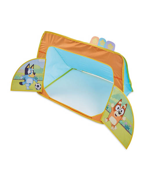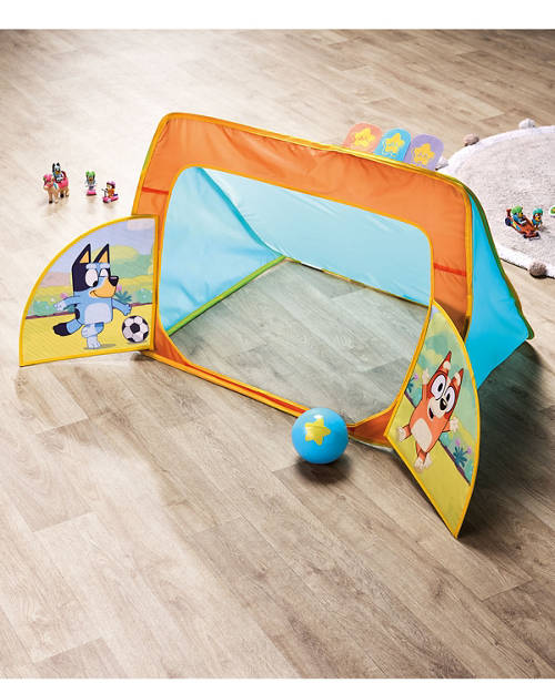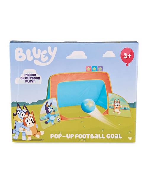 - Choose from pop up Bluey Football Goal or Pop-Up Bluey Bowling Alley