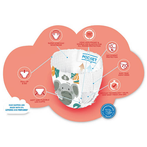 - Leak Lock Pockets - A protective pocket to help with leakage & poo explosions