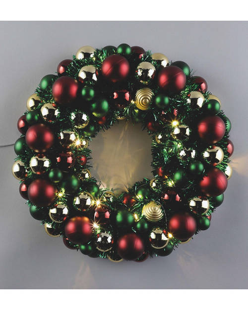 Large and shiney colourful wreaths and garlands will brighten up any room