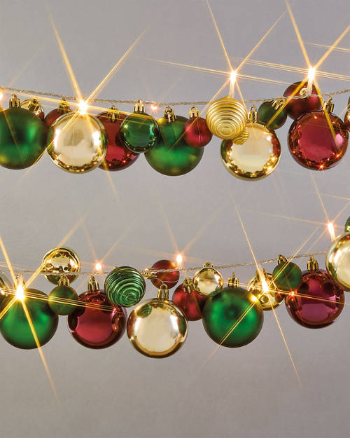 Large and shiney colourful wreaths and garlands will brighten up any room