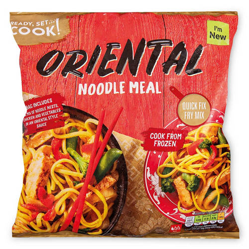 - A mix of noodle nests, chicken and vegetables in an Oriental style sauce.