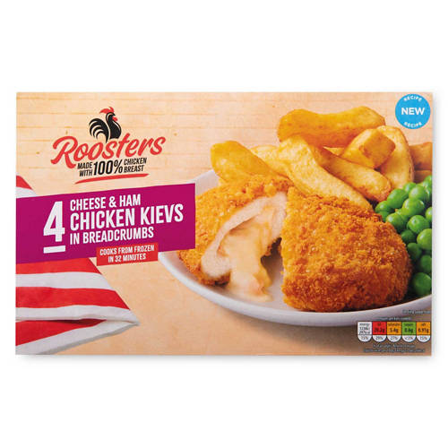 Delicious Cheese & Ham Kievs in breadcrumbs.