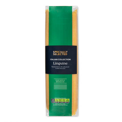 Dried linguine pasta made with durum wheat semolina.