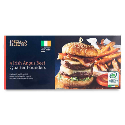 4 Irish Aberdeen Angus quarter pounder burgers.