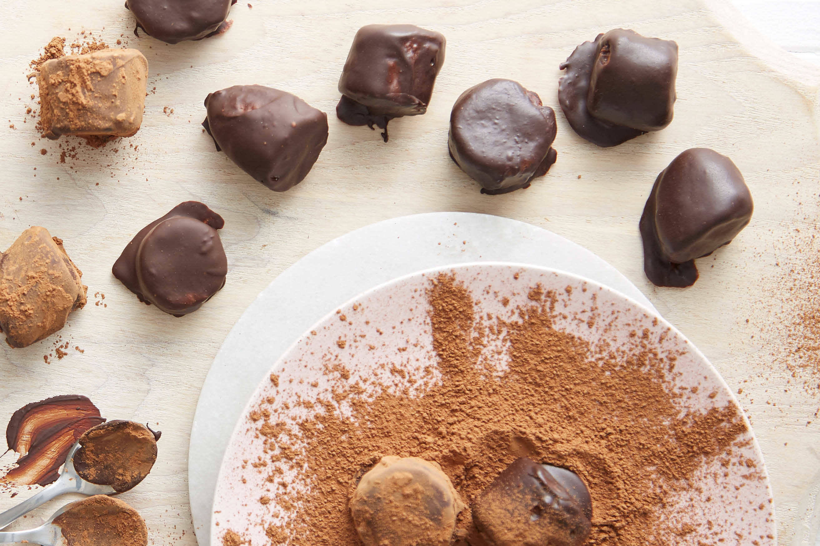 - Dip the frozen banana slices in the chocolate to coat them all over with chocolate. Put them back on the baking sheet and freeze again for 10 minutes. Sprinkle over the cocoa just before serving.